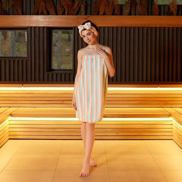 Набор для бани и ванной Этель "Полосы" полотенце-парео 75*120 см+повязка — Характеристики