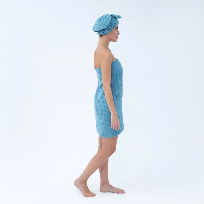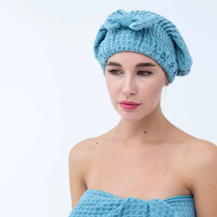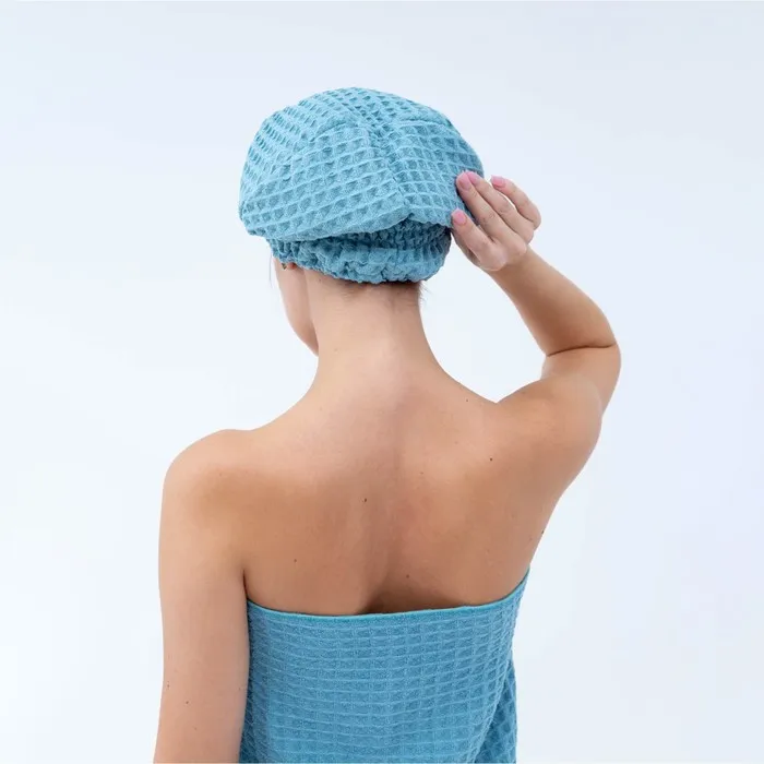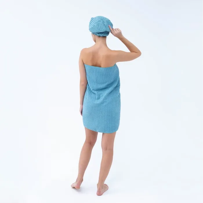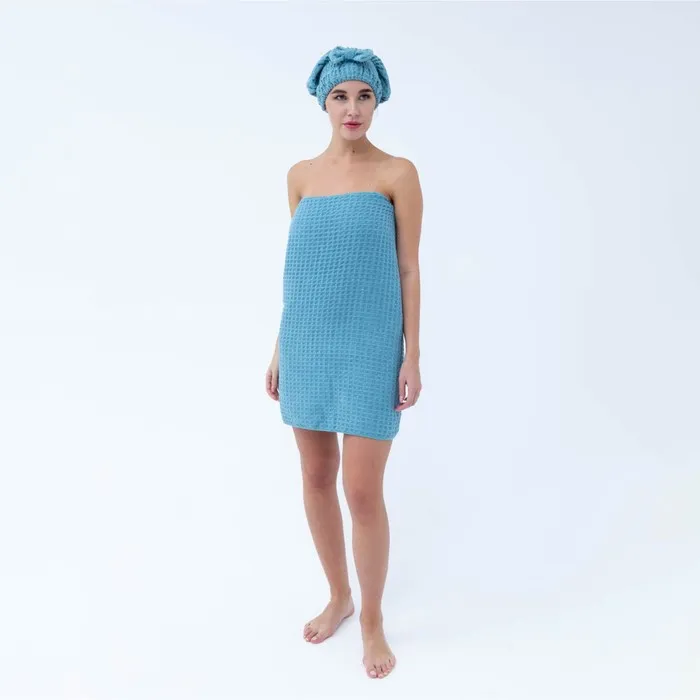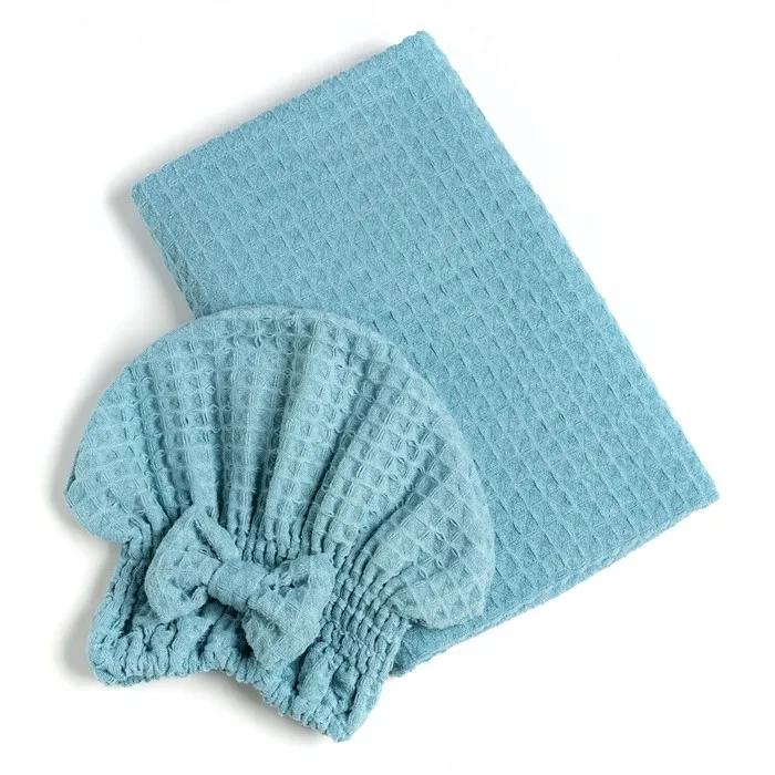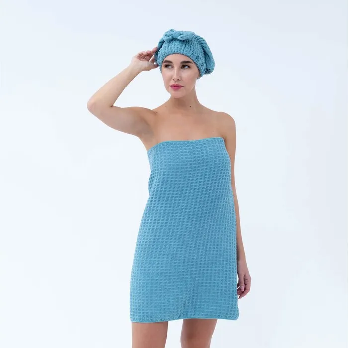 Набор для бани и ванной Этель «Вафля» полотенце 70*140 см+чалма 21*25 см, цв.синий — Характеристики