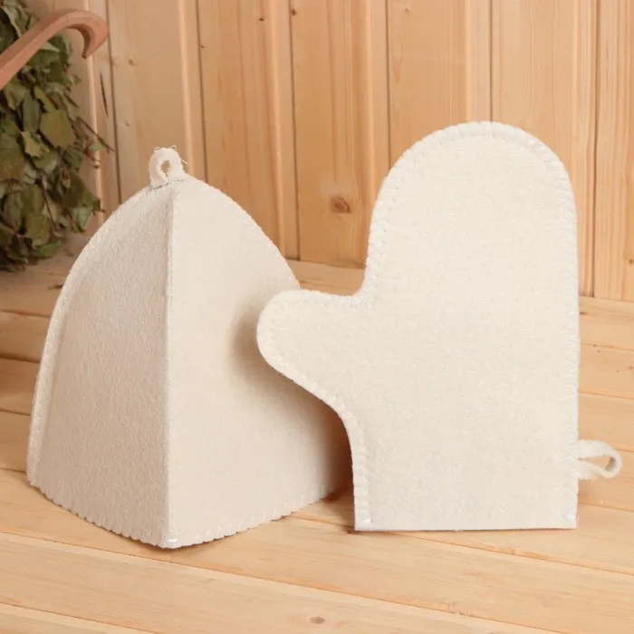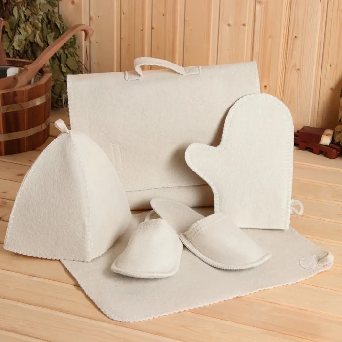 Для комфортного отдыха в парной возьмите с собой набор банных принадлежностей. Предметы из этого комплекта предохраняют тело от перегрева и являются средствами индивидуального пользования. Влажные изделия рекомендуется сушить в расправленном виде на горизонтальной поверхности. Принадлежности из войлока и фетра стирайте вручную при температуре воды 30 °C.