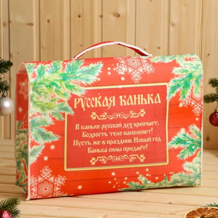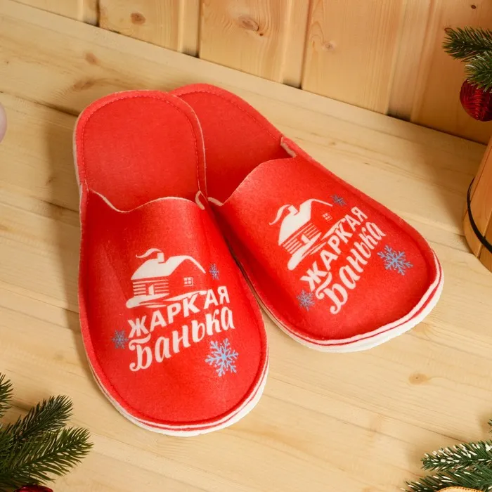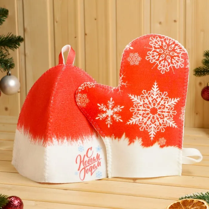 Набор для бани с принтом «С новым годом!», 5 предметов: шапка, рукавица, тапочки, коврик, войлок, красный, «Банная забава» — Характеристики