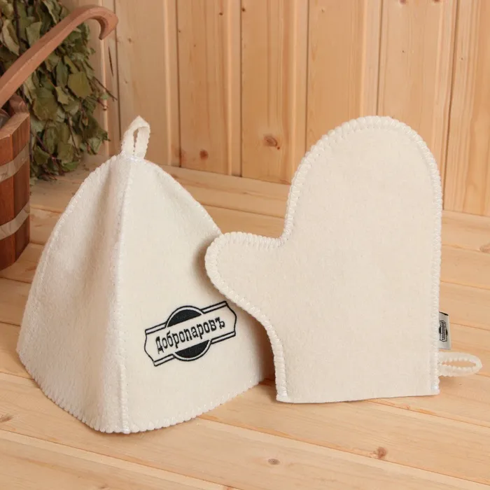 Для комфортного отдыха в парной возьмите с собой набор банных принадлежностей. Предметы из этого комплекта предохраняют тело от перегрева и являются средствами индивидуального пользования. Влажные изделия рекомендуется сушить в расправленном виде на горизонтальной поверхности. Принадлежности из войлока и фетра стирайте вручную при температуре воды 30 °C.