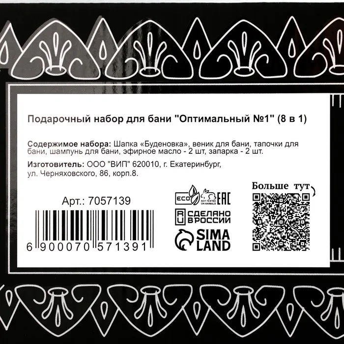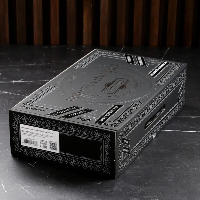 Набор для бани «Ценителю», 8 в 1: шапка, тапочки, веник, запарка 2 шт., масло 2 шт., шампунь, в подарочной коробке, «Добропаровъ Премиум» — Характеристики