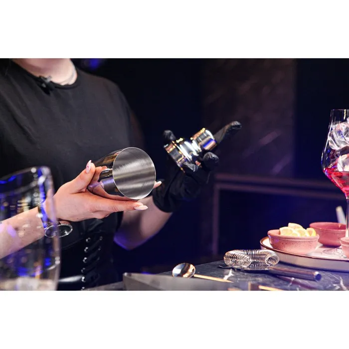 - джиггер — он же мерный стаканчик — для контроля количества добавляемой жидкости.
