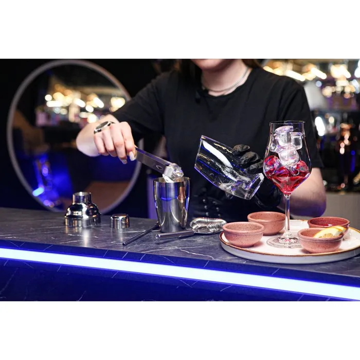 - ложку, используемую для перемешивания ингредиентов и приготовления слоистых коктейлей;