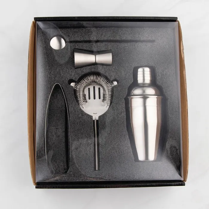 Набор для бара «Биг Джон», 5 предметов: щипцы, стрейнер, ложка, шейкер, джиггер, нержавеющая сталь — Характеристики
