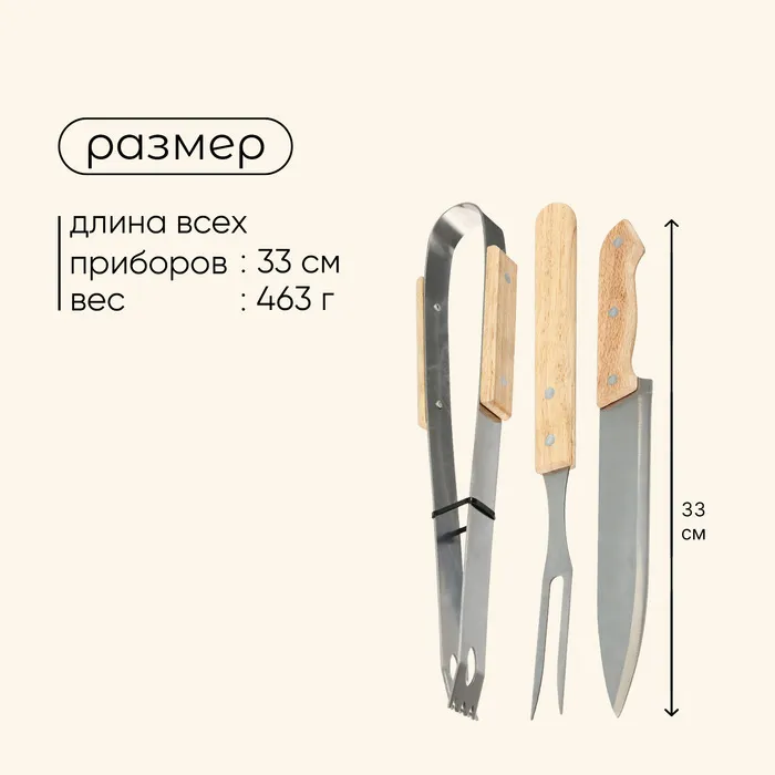 Набор для барбекю Maclay: нож, вилка, щипцы, 33 см — Характеристики