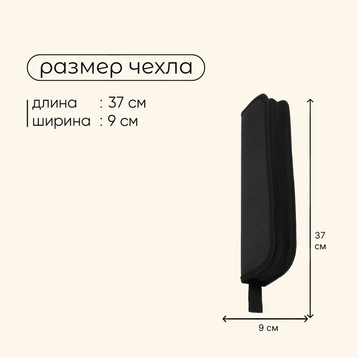 - Размер чехла: 37 × 9 × 5 см.
