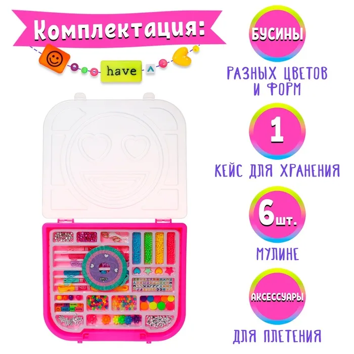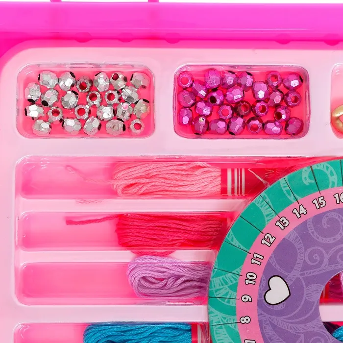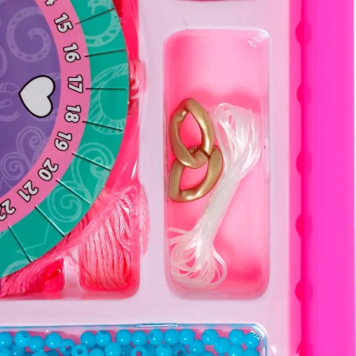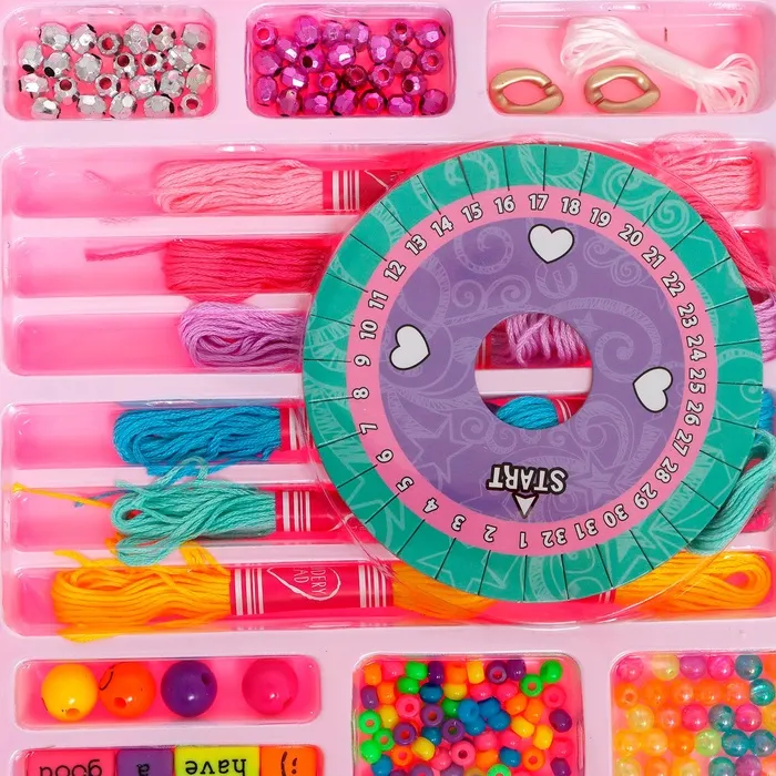 Ребёнок в поисках нового хобби? Предложите ему заняться плетением фенечек и браслетов. Из ярких и красочных бусин и мулине у него получится создать первые авторские украшения с помощью круга для плетения. Из этого набора получатся ожерелья, браслеты, брелоки, кольца или бусы. Юный творец сможет смастерить парные украшения для себя и друзей.