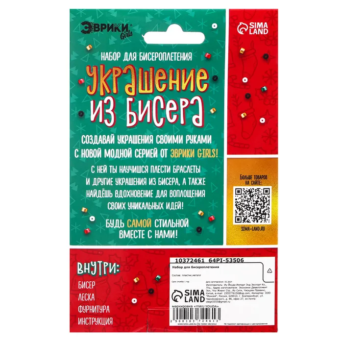 Набор для бисероплетения «Новогоднее украшение из бисера» — Характеристики