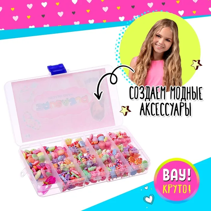 В кейсе есть всё необходимое для творчества: 14 видов элементов, из которых можно делать аксессуары в разных стилях.
