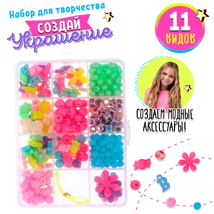 Набор для бисероплетения — идеальное решение для занятия творчеством! Девочка научится плести браслеты-фенечки и другие украшения из бисера, а также найдёт вдохновение для воплощения своих уникальных идей. Готовые аксессуары станут отличным дополнением стильного образа или подарком для близких.
