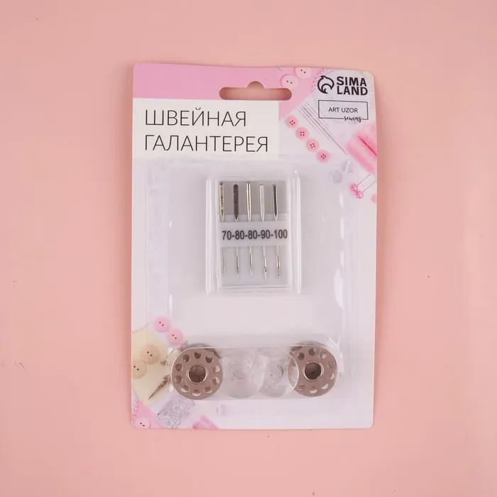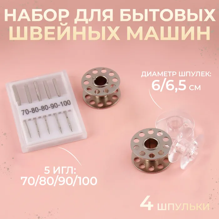 Набор для бытовых швейных машин: 4 шпульки, 5 игл 70, 80, 90, 100 — Характеристики