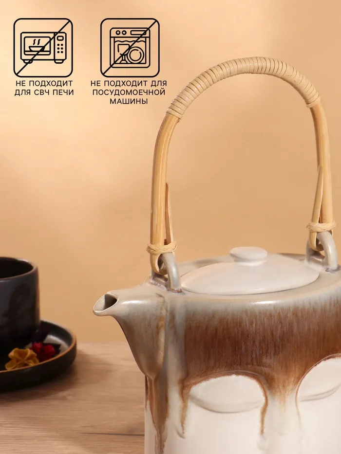 Набор для чаепития «Чёрно-белый глаз», чайник, 2 чайные пары, керамика — Характеристики