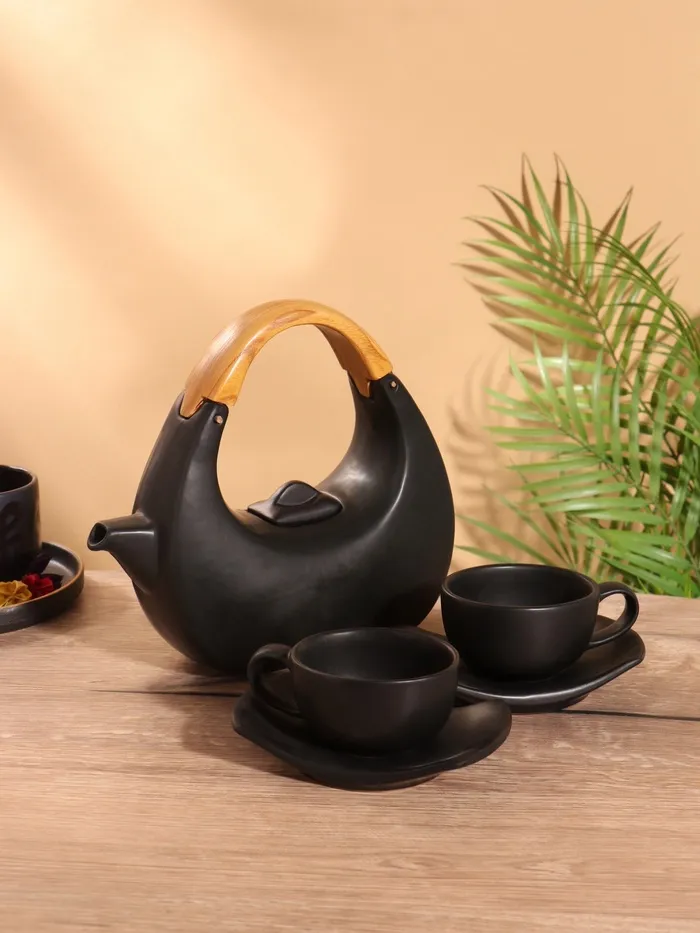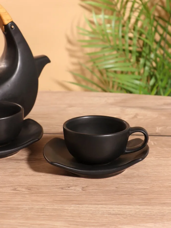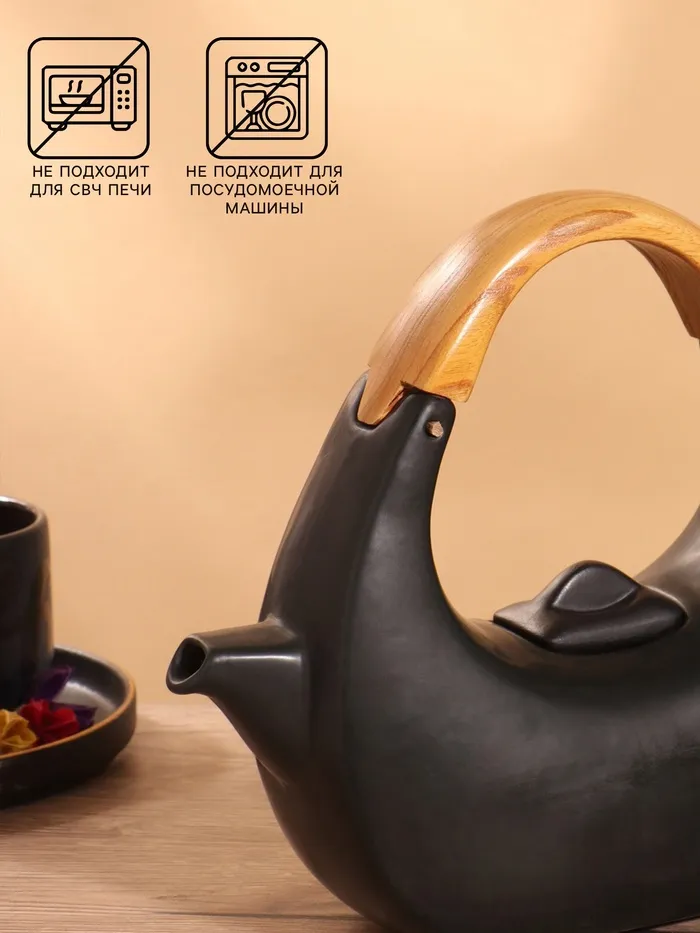 Набор для чаепития «Тёмный утюжок», чайник, 2 чайные пары, керамика — Характеристики