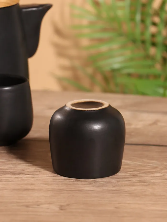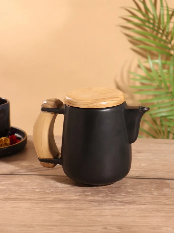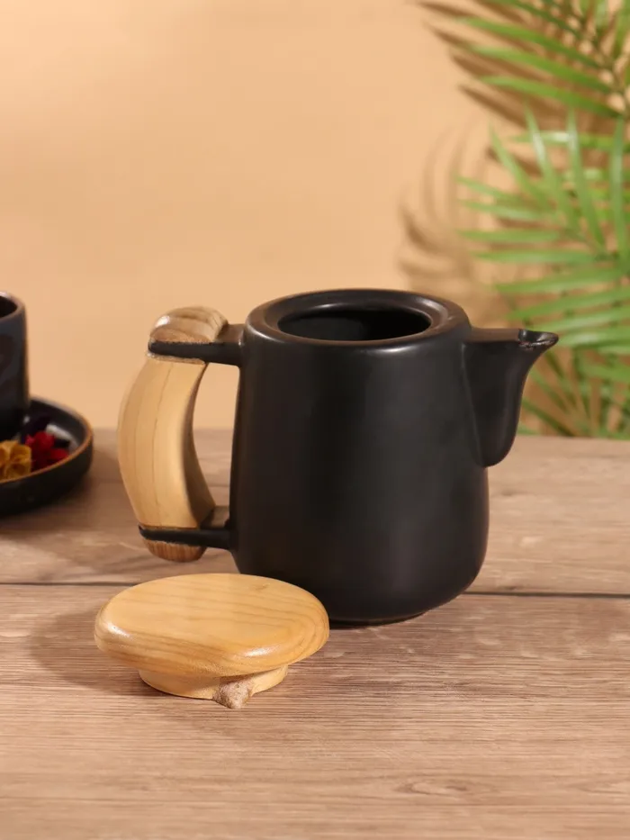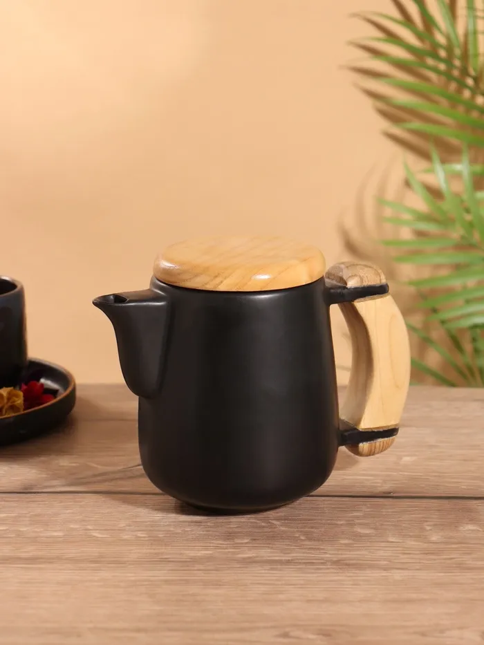 Набор для чаепития «Загадка» в чёрно-бежевых тонах — идеальный выбор для уютного чаепития на двоих. Этот изысканный керамический комплект состоит из оригинального чайничка и двух стаканов с фигурной формой. Каждый элемент создан из прочной керамики и украшен стильной деревянной ручкой, что придает ему особенную элегантность. Гладкая текстура поверхности добавляет утонченности в каждую деталь. Набор не предназначен для использования в СВЧ-печи и посудомоечной машине, что делает его нежным и требующим деликатного ухода, но это лишь усиливает его особенность и индивидуальность.