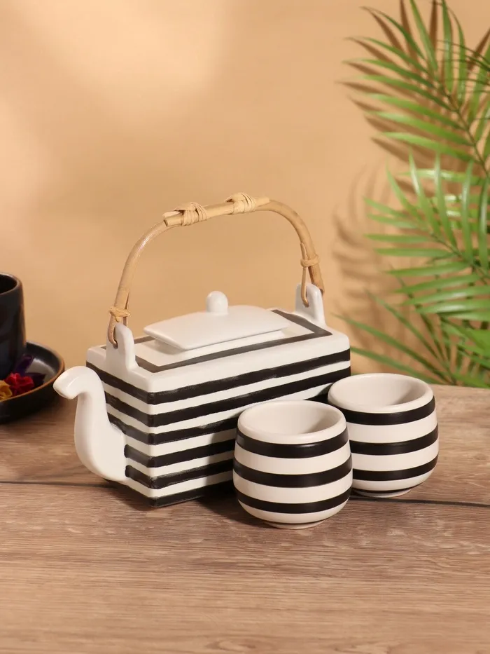 Набор для чаепития «Зебра», чайник, 2 стакана, керамика — Характеристики