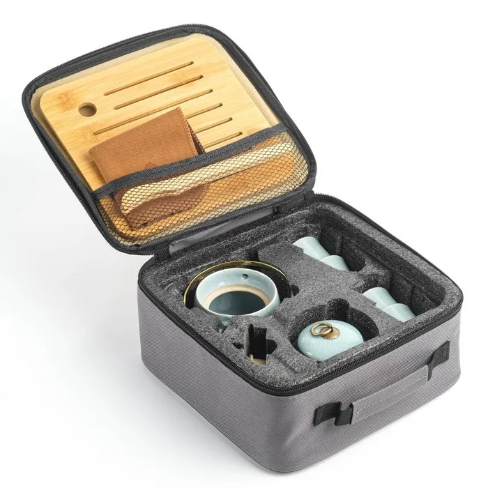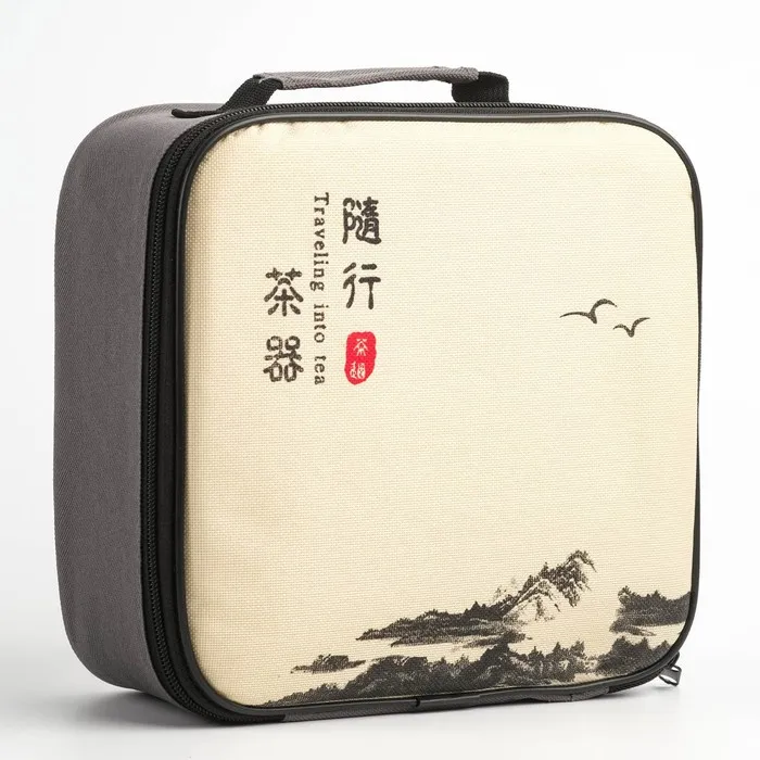 Портативный чайный набор, благодаря компактной сумке с ручкой, удобно брать с собой на природу, в гости, на дачу. Посуда подходит как для торжественных чайных церемоний, так и для повседневного домашнего использования. Изделие изготовлено из прочной керамики, а крышка соединена с ручкой с помощью веревки, чтобы избежать падения.