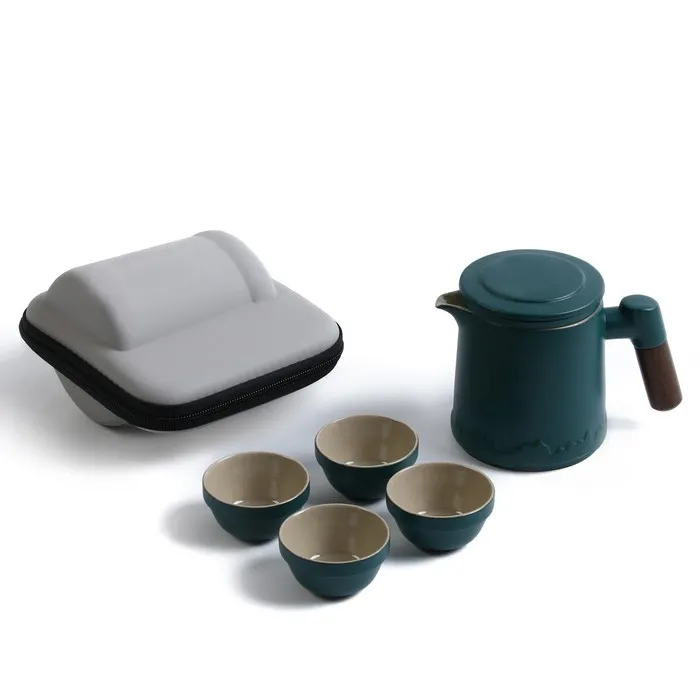 Портативный чайный набор, благодаря компактному чехлу с ручкой, удобно брать с собой на природу, в гости, на дачу. Посуда подходит как для торжественных чайных церемоний, так и для повседневного домашнего использования. Изделие изготовлено из прочной керамики.