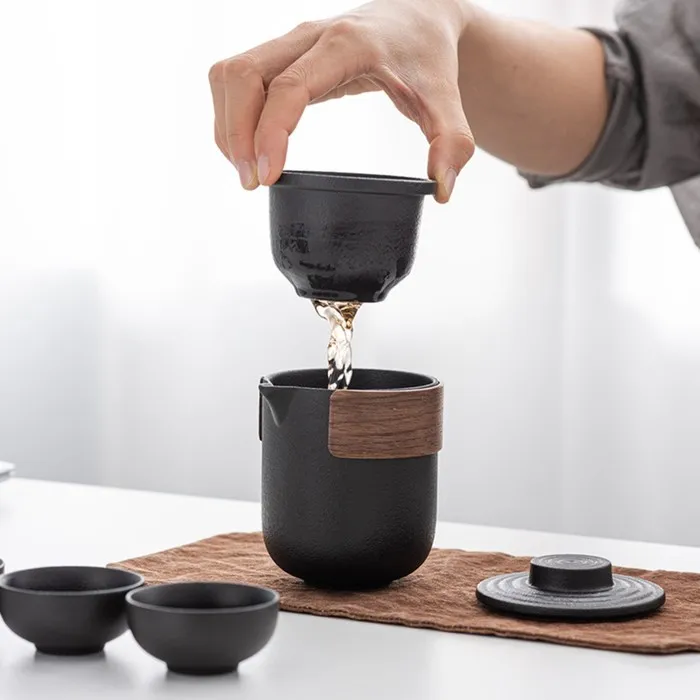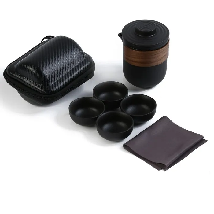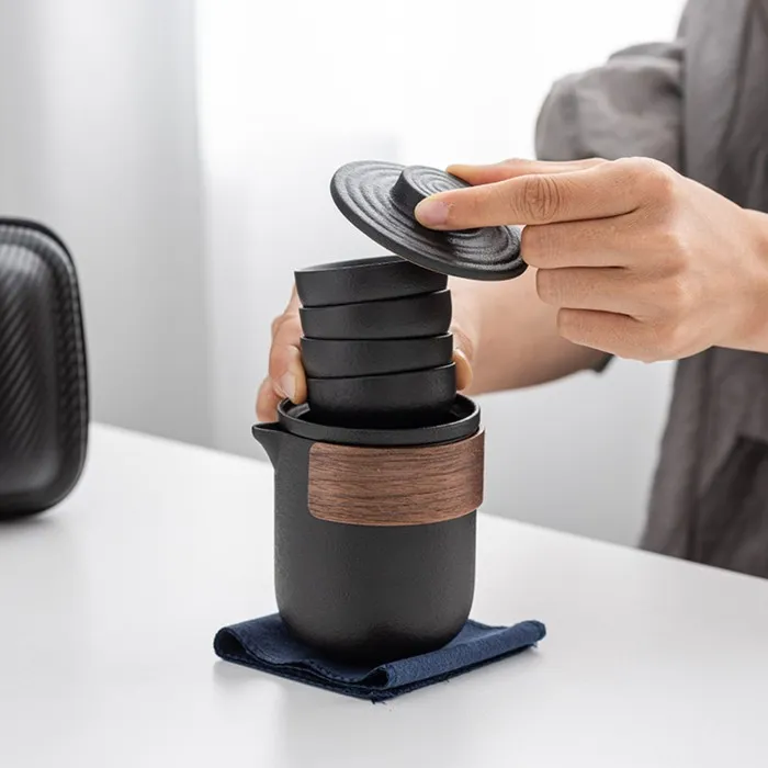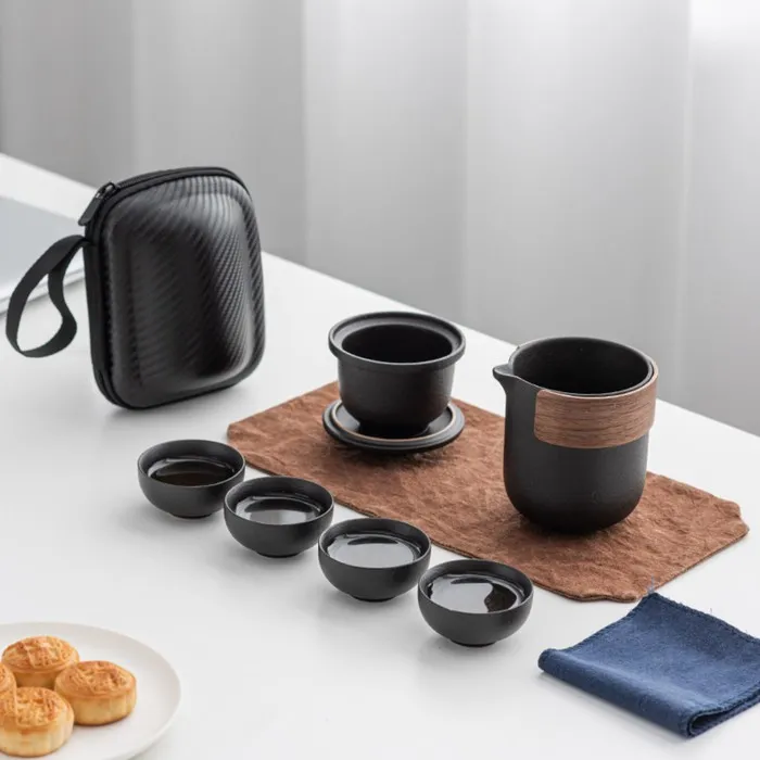 Портативный чайный набор, благодаря компактному чехлу с ручкой, удобно брать с собой на природу, в гости, на дачу. Посуда подходит как для торжественных чайных церемоний, так и для повседневного домашнего использования. Изделие изготовлено из прочной керамики.