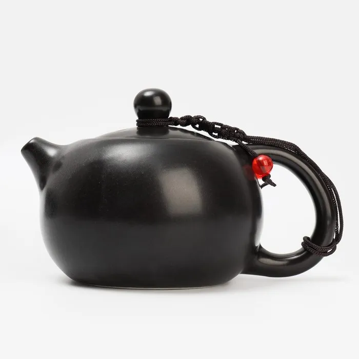 Все предметы выполнены в черном цвете, что придает набору стильный и современный вид. Изделие изготовлено из прочной керамики, а крышка соединена с ручкой с помощью веревки, чтобы избежать падения.