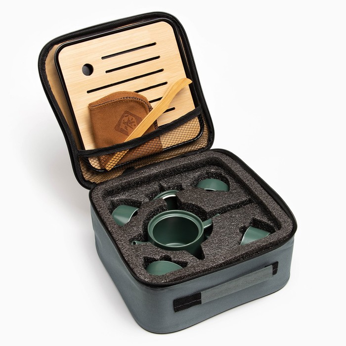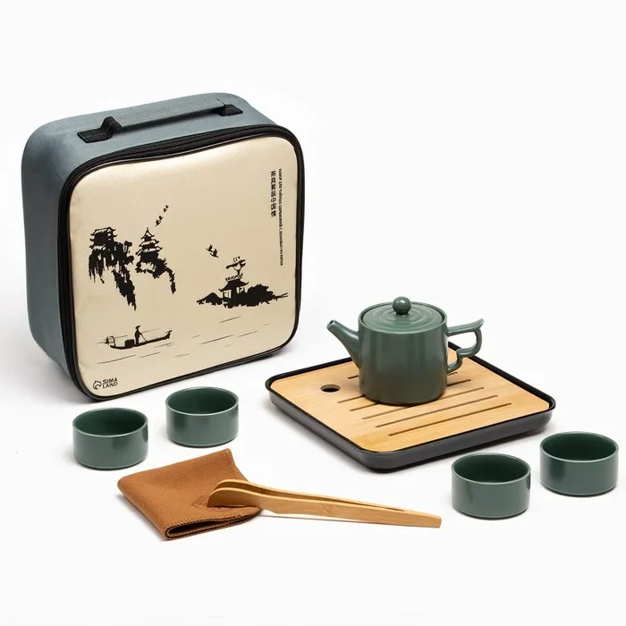 Портативный чайный набор, благодаря компактной сумке с ручкой, удобно брать с собой на природу, в гости, на дачу. Посуда подходит как для торжественных чайных церемоний, так и для повседневного домашнего использования. Изделие изготовлено из прочной керамики, а крышка соединена с ручкой с помощью веревки, чтобы избежать падения.