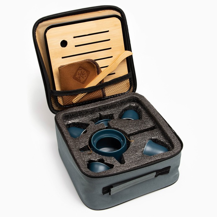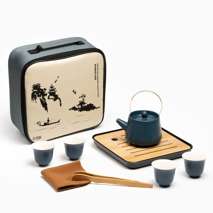 Портативный чайный набор, благодаря компактной сумке с ручкой, удобно брать с собой на природу, в гости, на дачу. Посуда подходит как для торжественных чайных церемоний, так и для повседневного домашнего использования. Изделие изготовлено из прочной керамики, а крышка соединена с ручкой с помощью веревки, чтобы избежать падения.