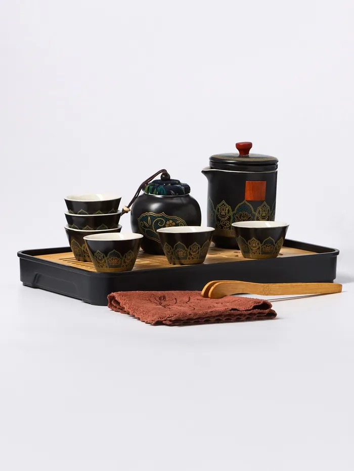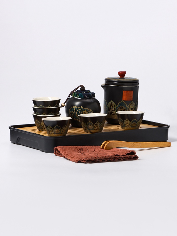 Черная чайная церемония для шестерых — это идеальное дополнение к вашему домашнему уюту, которое предоставляет уникальную возможность окунуться в атмосферу Востока и насладиться эстетикой традиционного чая. Этот универсальный чайный сервис включает десять изысканных предметов, добавляющих колоритные штрихи вашему столу и превращающих каждый чаепитие в мини-церемонию с выразительной азиатской тематикой.