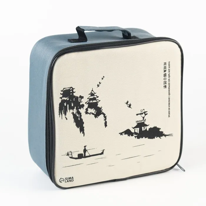 Набор для чайной церемонии керамический «Атмосфера», 6 предметов: чайник 250 мл, 3 пиалы 50 мл, тряпка, сумка, цвет коричневый