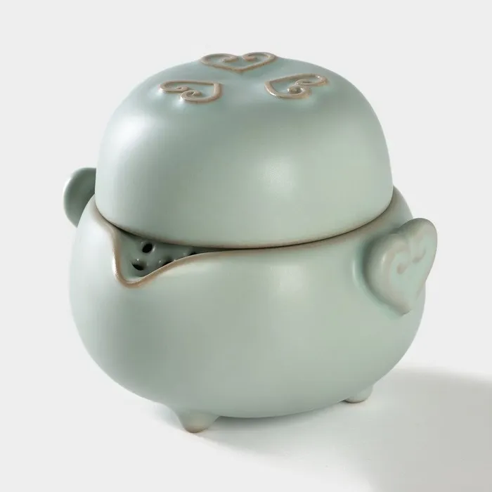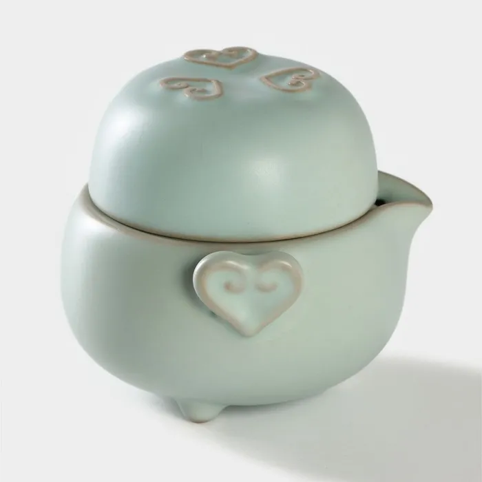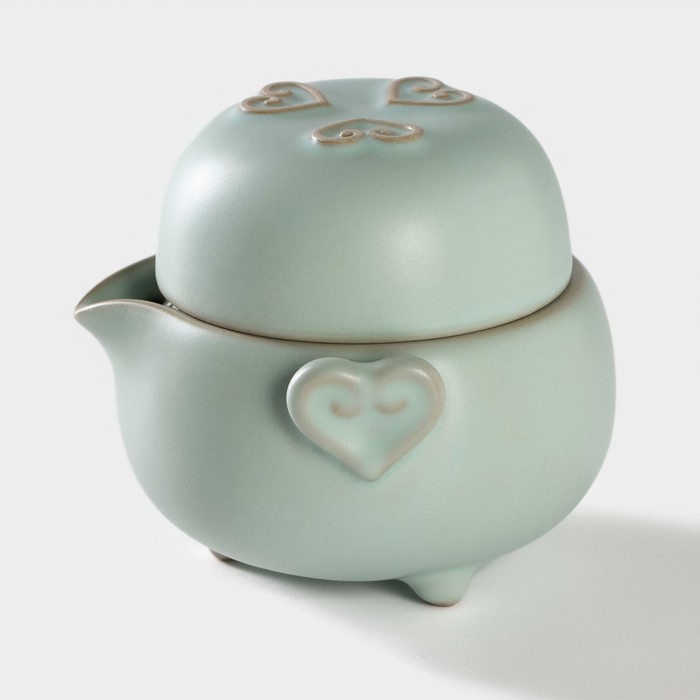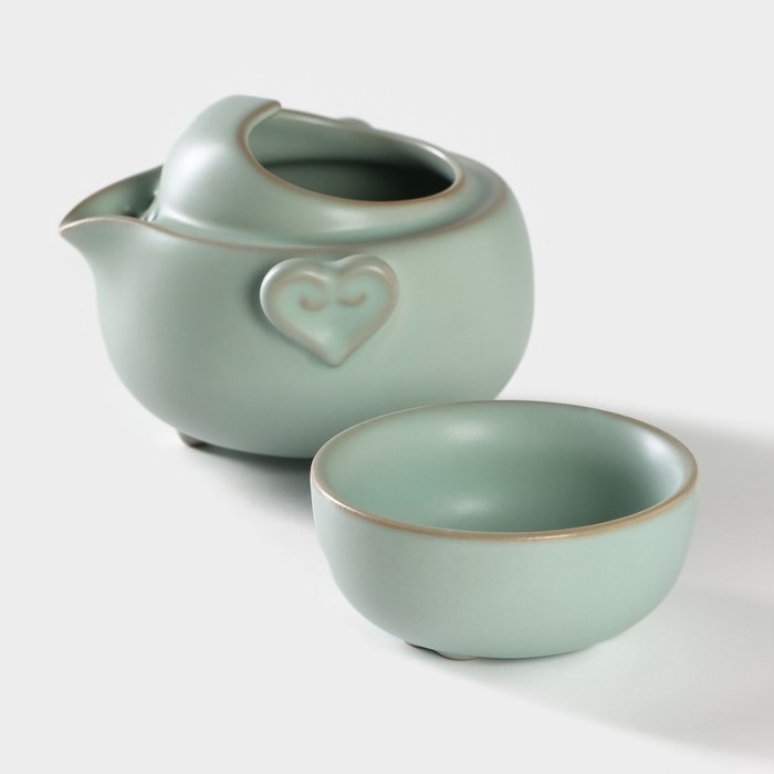 Набор для чайной церемонии керамический «Тясицу», 2 предмета: чайник 200 мл, чашка 100 мл, цвет голубой включает изделия из качественной керамики оригинальной формы, каждое из которых выполнено в восточной манере.
