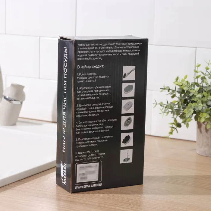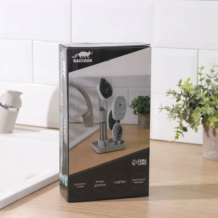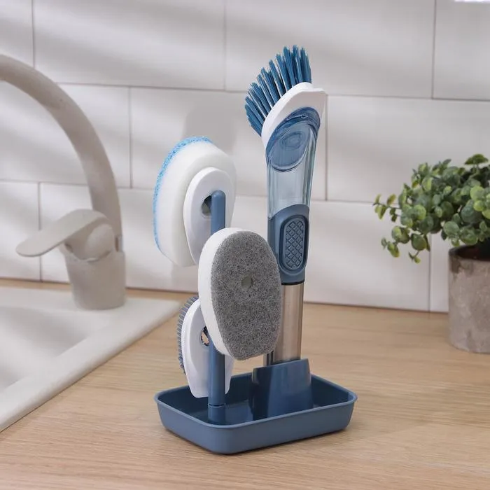 Набор для чистки посуды Raccoon «Практик», ручка-дозатор, 4 щётки, держатель-стойка, цвет синий — Характеристики