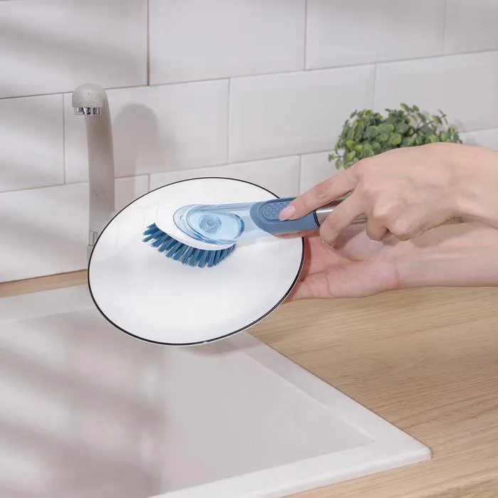 - Эргономичная ручка с дозатором моющего средства - просто нажмите кнопку, чтобы продолжить мытье посуды!