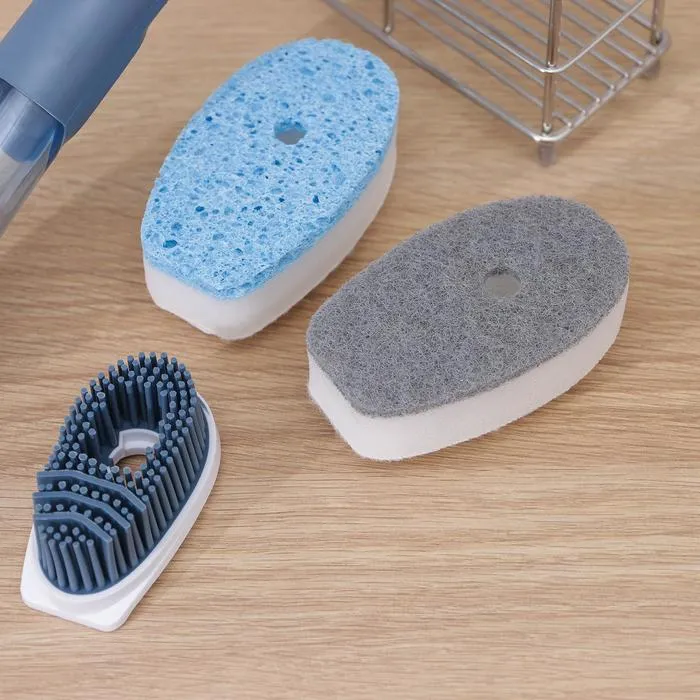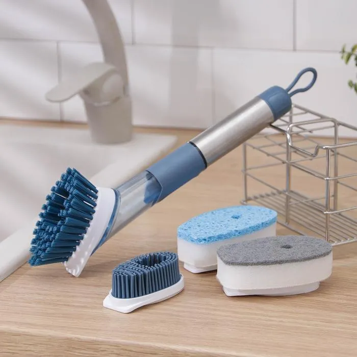 Щетка для мытья посуды с дозатором и сменными насадками.