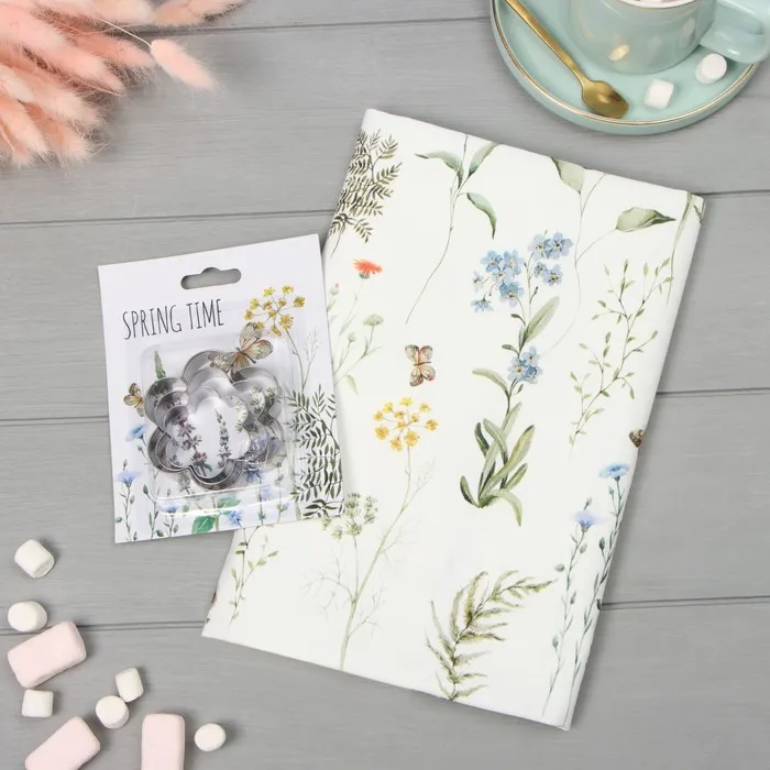 Набор «Весеннее время»: полотенце 40×73 см, саржа 190 г/м², формочки для печенья