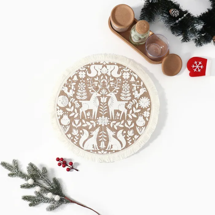Салфетка сервировочная «Олени» цвет белый, 37*37 см, джут