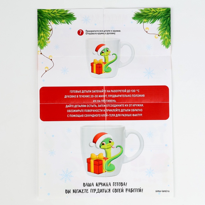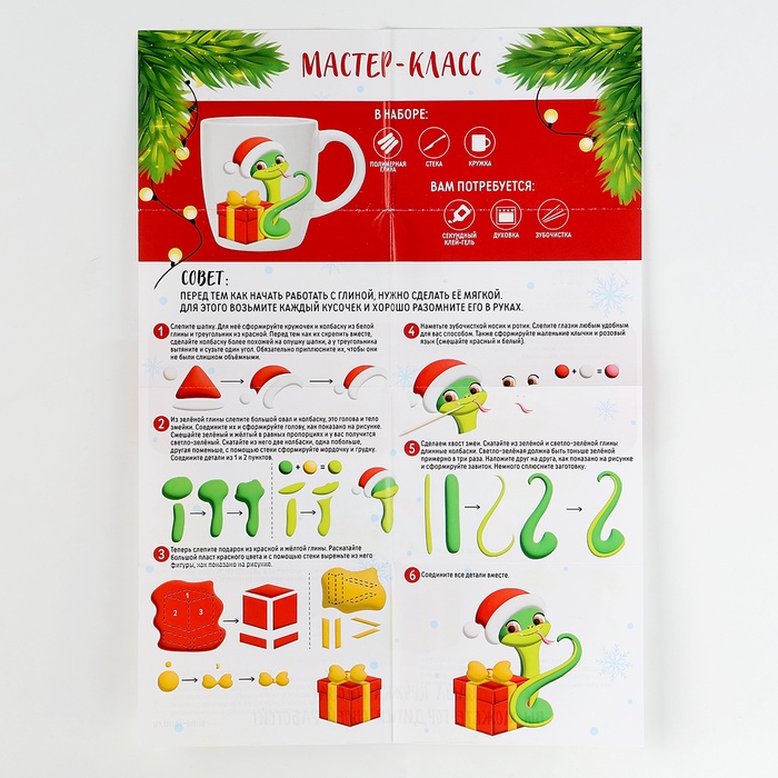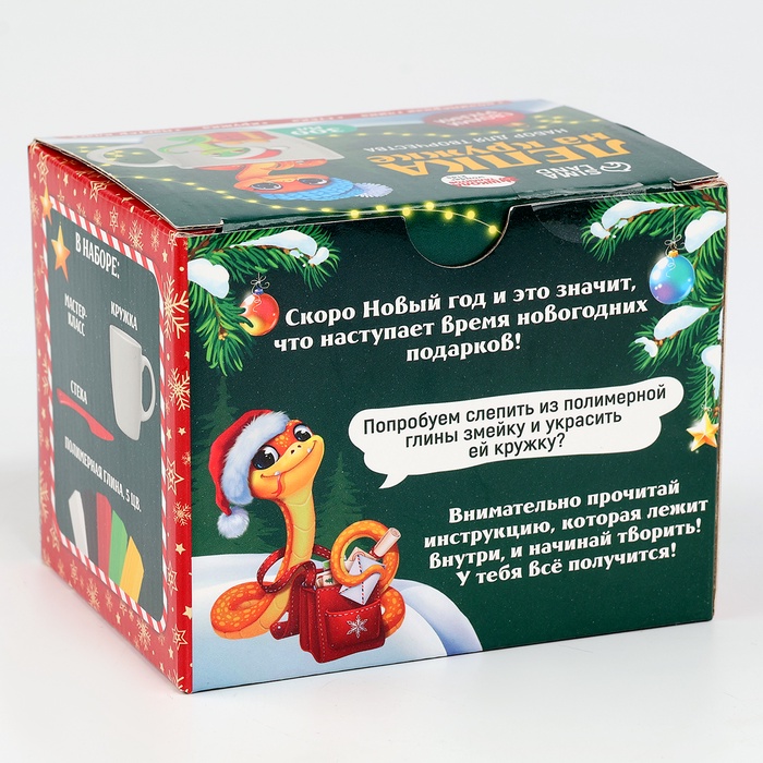 Набор для декора кружки полимерной глиной со стразами на новый год «Змейка в шапочке» — Характеристики