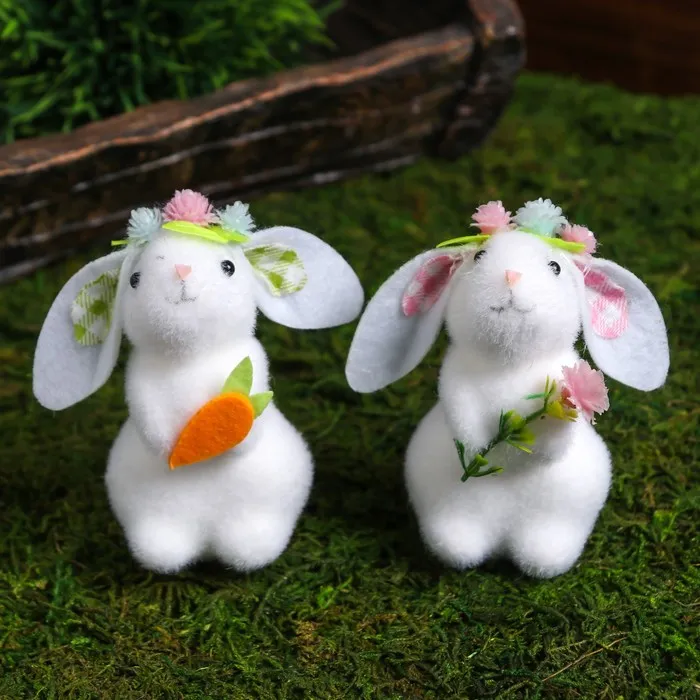 Фигурка «Кролики с морковкой и цветочком», набор 2 шт., 8×4.5×4.5 см