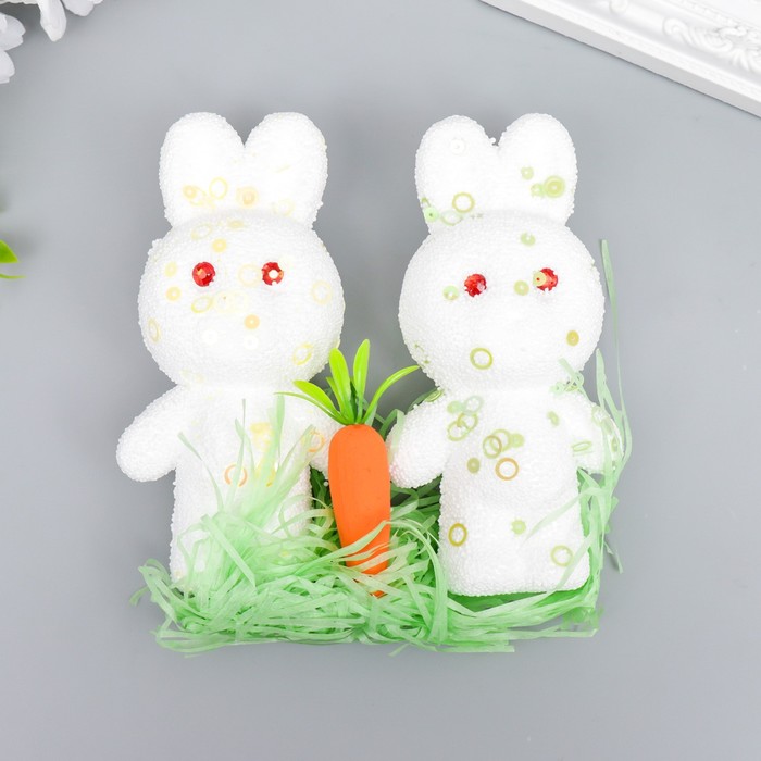 Пасхальный декор «Зайчата в посыпке с морковкой и травкой», набор 12 см, настольная фигурка