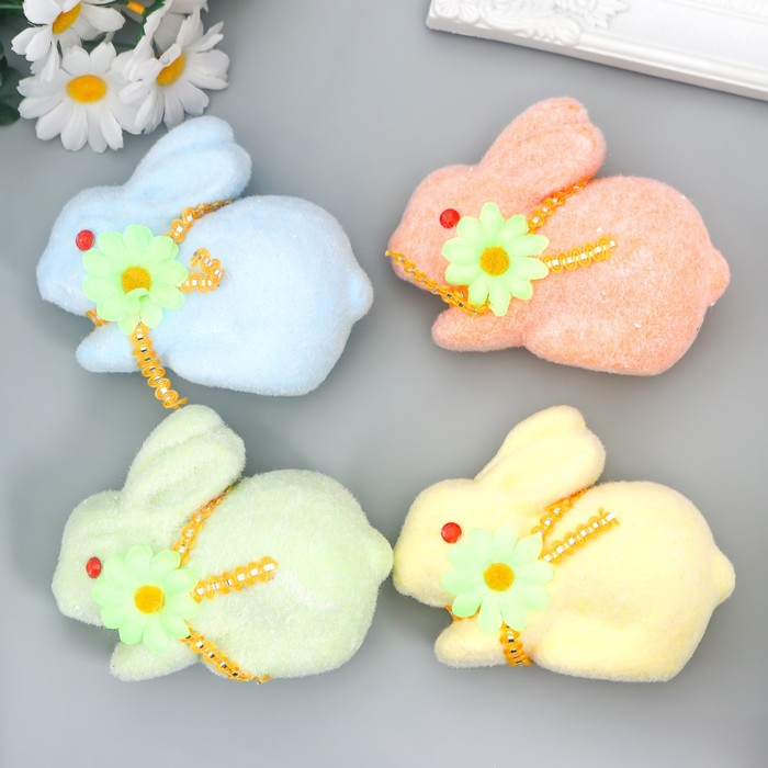 Пасхальный декор «Кролик с ленточкой и цветком на шее», 13 см, настольная фигурка, МИКС