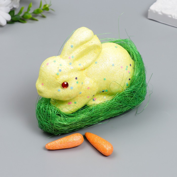 Пасхальный декор «Зайчата в посыпке с морковкой и травкой», набор: жёлтый, зелёный, 12 см, настольная фигурка