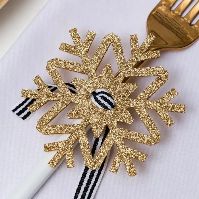 Набор для декора столовых предметов «Снежинка», 4 шт, цвет золото 7х8 см 100% п/э, фетр — Характеристики