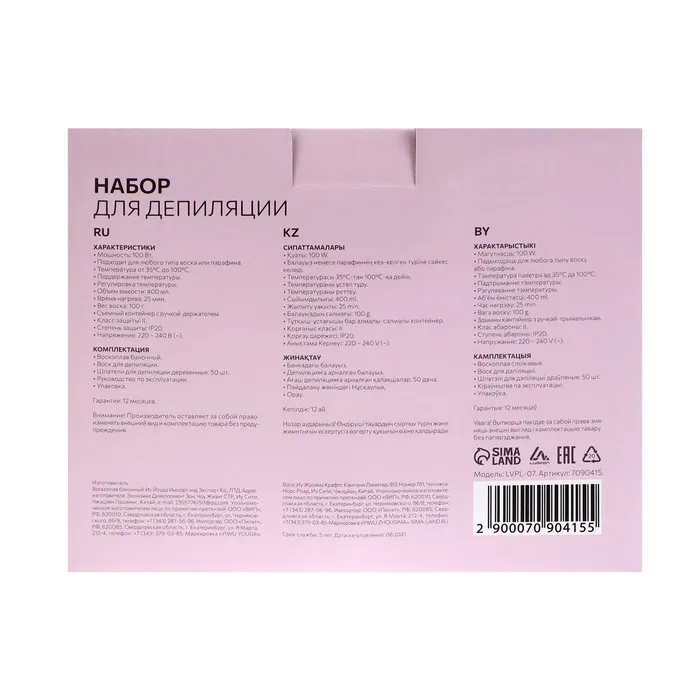 Набор для депиляции Luazon Воскоплав баночный, 100 Вт, воск, шпатель — Характеристики