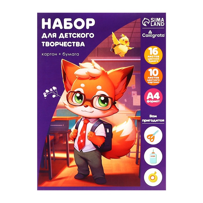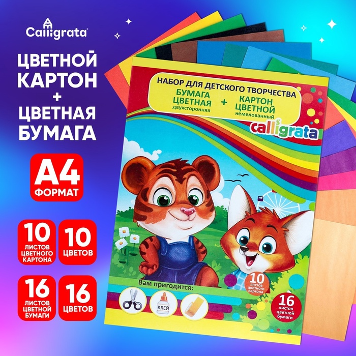 Набор для детского творчества А4, 10 листов картон цветной немелованный + 16 листов бумага цветная двусторонняя — Характеристики