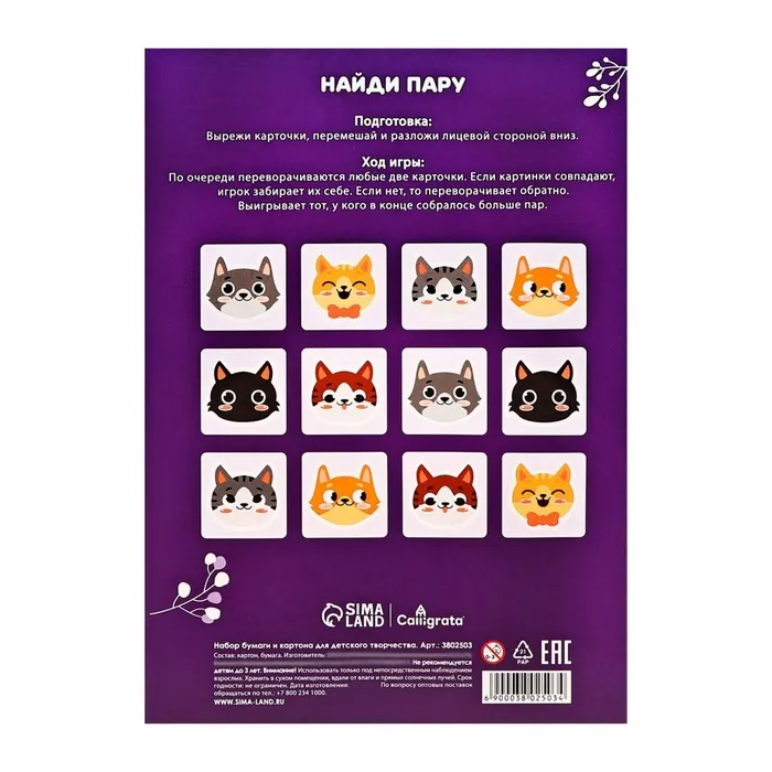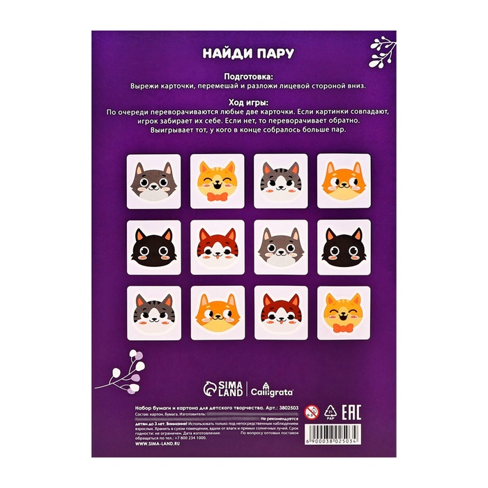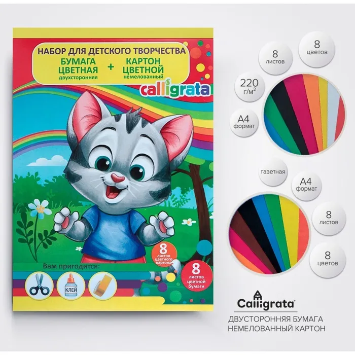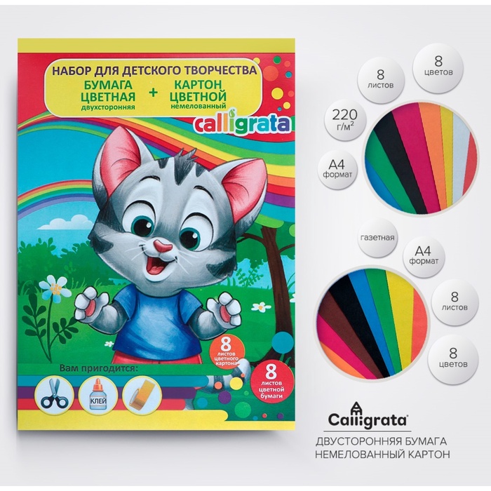 Набор для детского творчества А4, 8 листов картон цветной немелованный + 8 листов бумага цветная двусторонняя, в папке — Характеристики