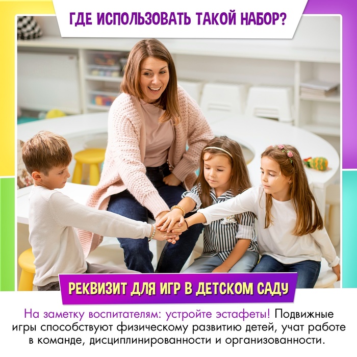 С набором для эстафет ребёнок улучшит координацию, разовьёт командный дух, выносливость и ловкость.