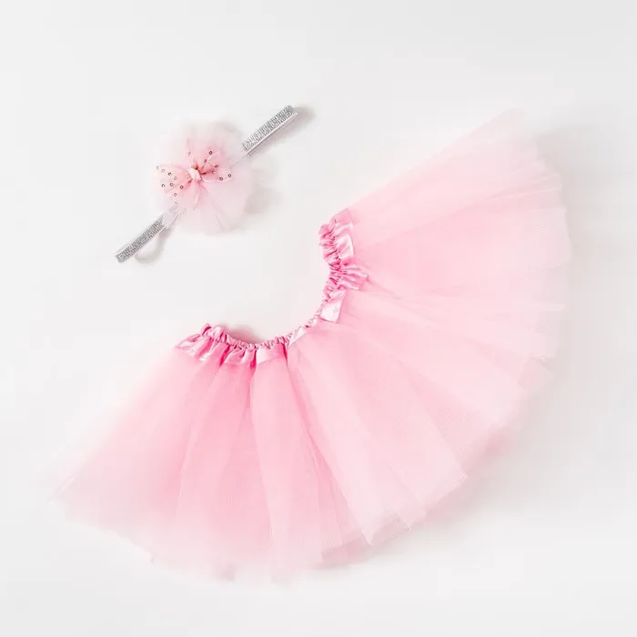 Набор для фотосессии Крошка Я "Любимый цветочек" юбка и повязка на голову, светло-розовый — Характеристики