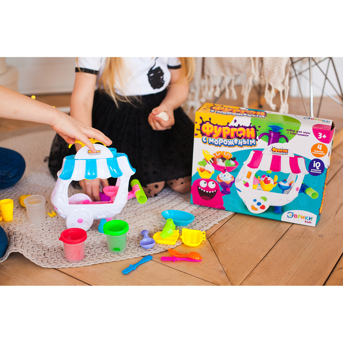 Игровой набор «Фургон с мороженым» — это увлекательный комплект для лепки, который позволит вашему ребёнку создать собственный мир сладостей и развить творческие способности.