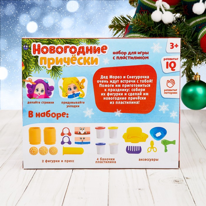 Набор для игры с пластилином «Новогодние причёски», 4 баночки пластилина — Характеристики