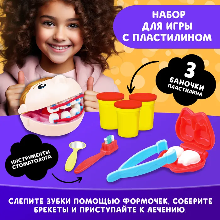 Привет, будущий зубной доктор! Набор «Зубной доктор» — это твоя собственная стоматологическая клиника, где ты сможешь лечить, лепить и даже ставить брекеты! Готов к приключениям?