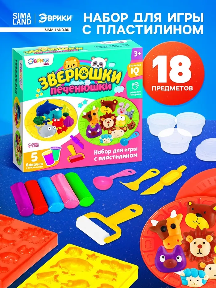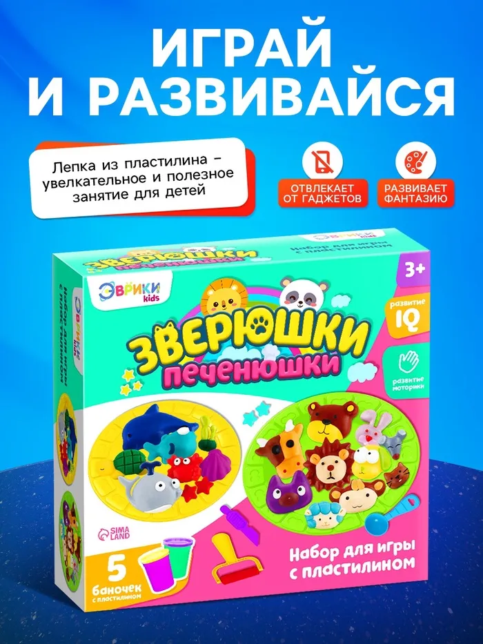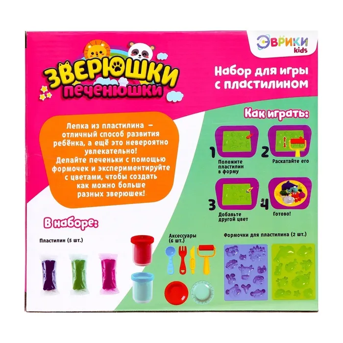 Игровой набор с пластилином «Зверюшки-печенюшки» станет отличным подарком для ребёнка, который любит творить! Маленькие пекари смогут «испечь» милых зверят и украсить их, как настоящие печенья.