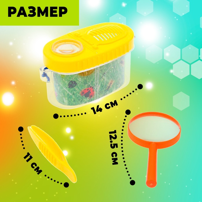 Набор для исследования «Юный биолог», пинцет, лупа, баночка для насекомых — Характеристики